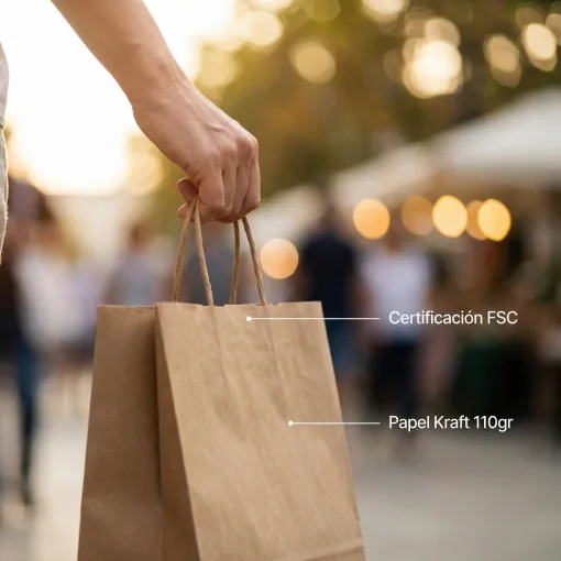Bolsa Papel Kraft 38X44X17 Cm (Delivery). Bolsa ecológica de papel kraft de 110gr. Cuenta con certificaciones ISO y FSC. Reciclable y biodegradable.